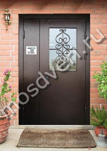 Уличная дверь металлическая со стеклом с художественной ковкой — объединяет современный дизайн и превосходные защитные характеристики.